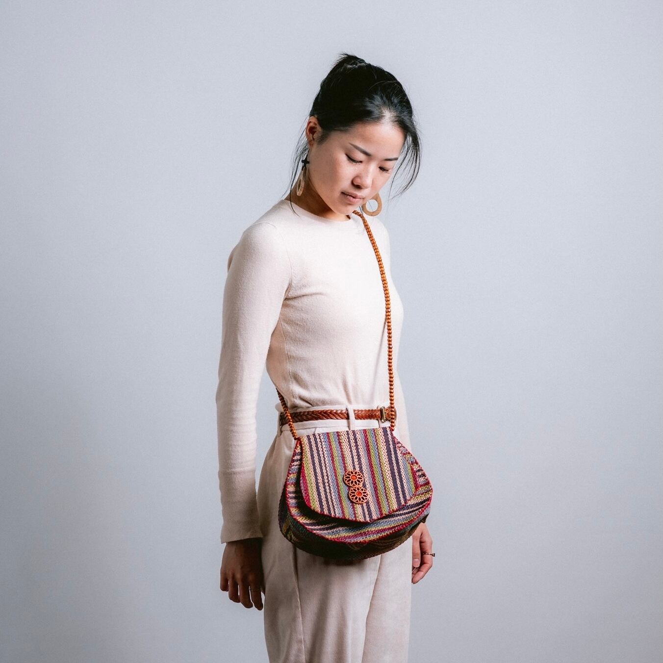 ラフィアという椰子の葉から採れる繊維を使って現地の職人たちが手で編みこんだ柔らかいカゴバックです。