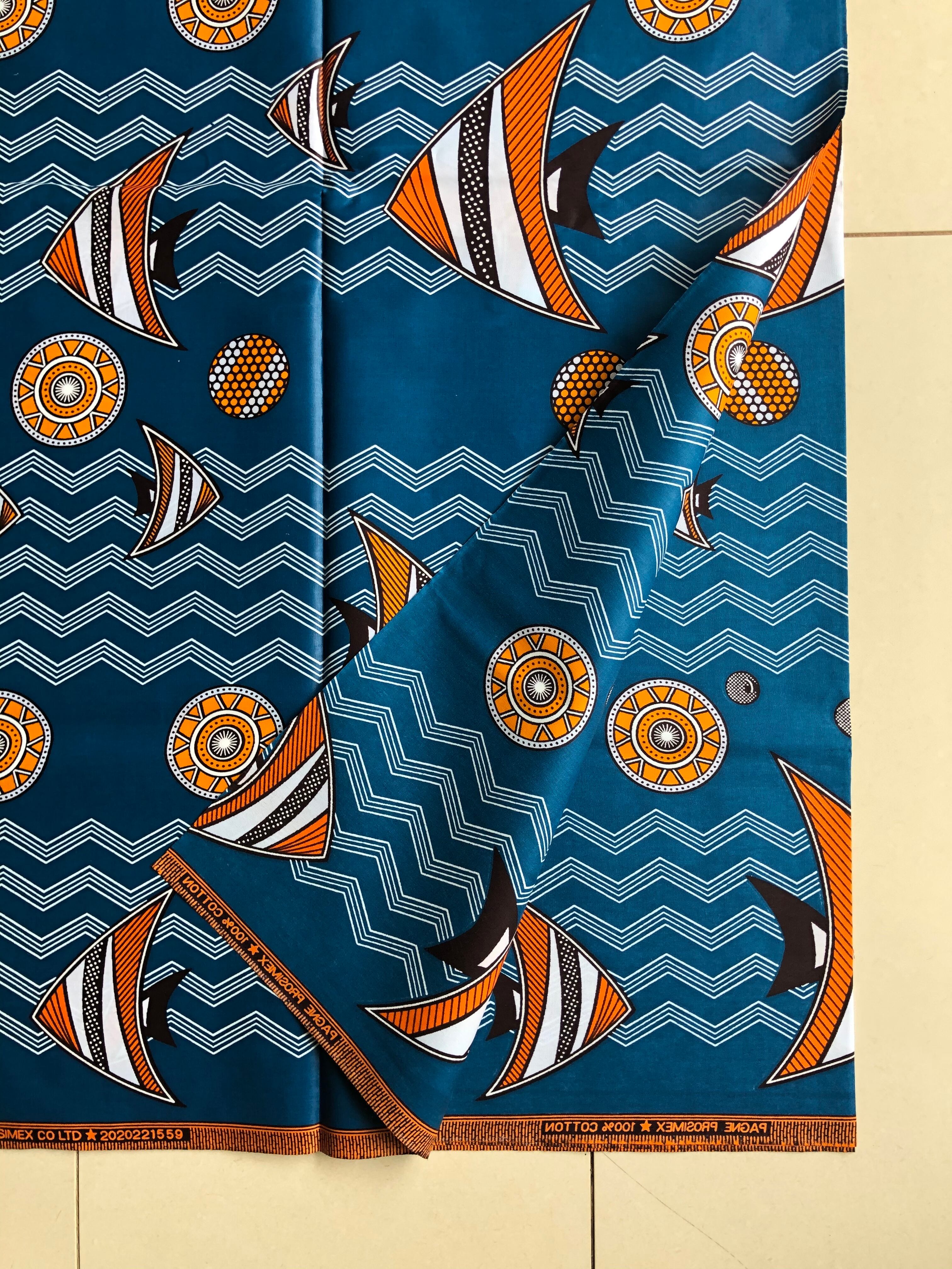 西アフリカで発展してきた機械ろうけつ染めのプリント布のこと。